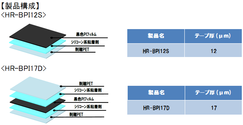 両面粘着タイプ「HR-BPI17D」の総厚=17μm